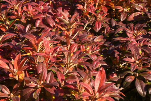 Neben gelb- oder weißbunten Blättern gibt es bei viele Sorten einen weißen bis bräunlich befilzten Austrieb (Indumentum), der für eine zusätzliche Zierde nach der Blüte sorgt und auch Schädlinge wie Netzwanzen abhält.